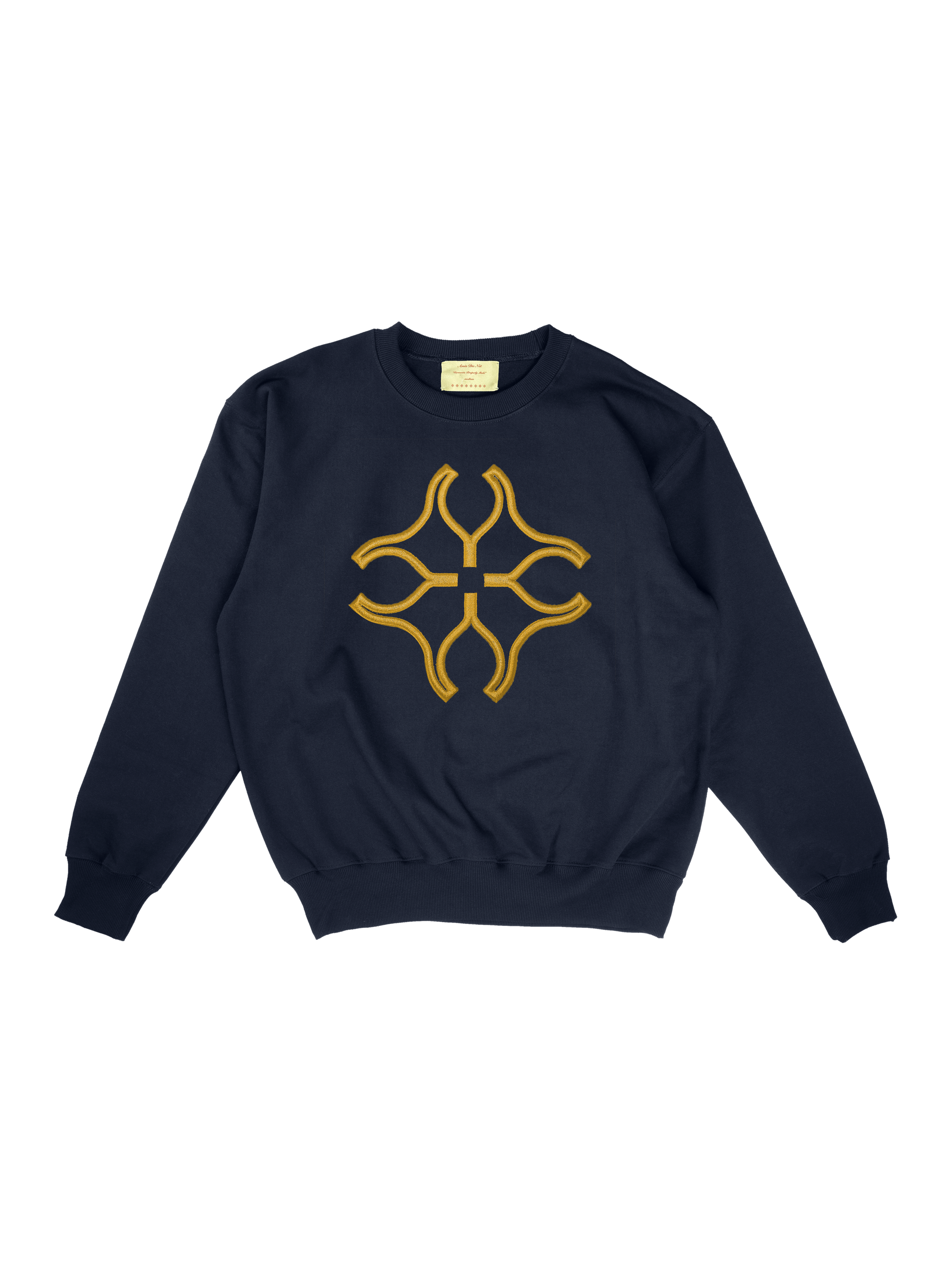 navy blue crewneck w/ yellow 3D embroidered